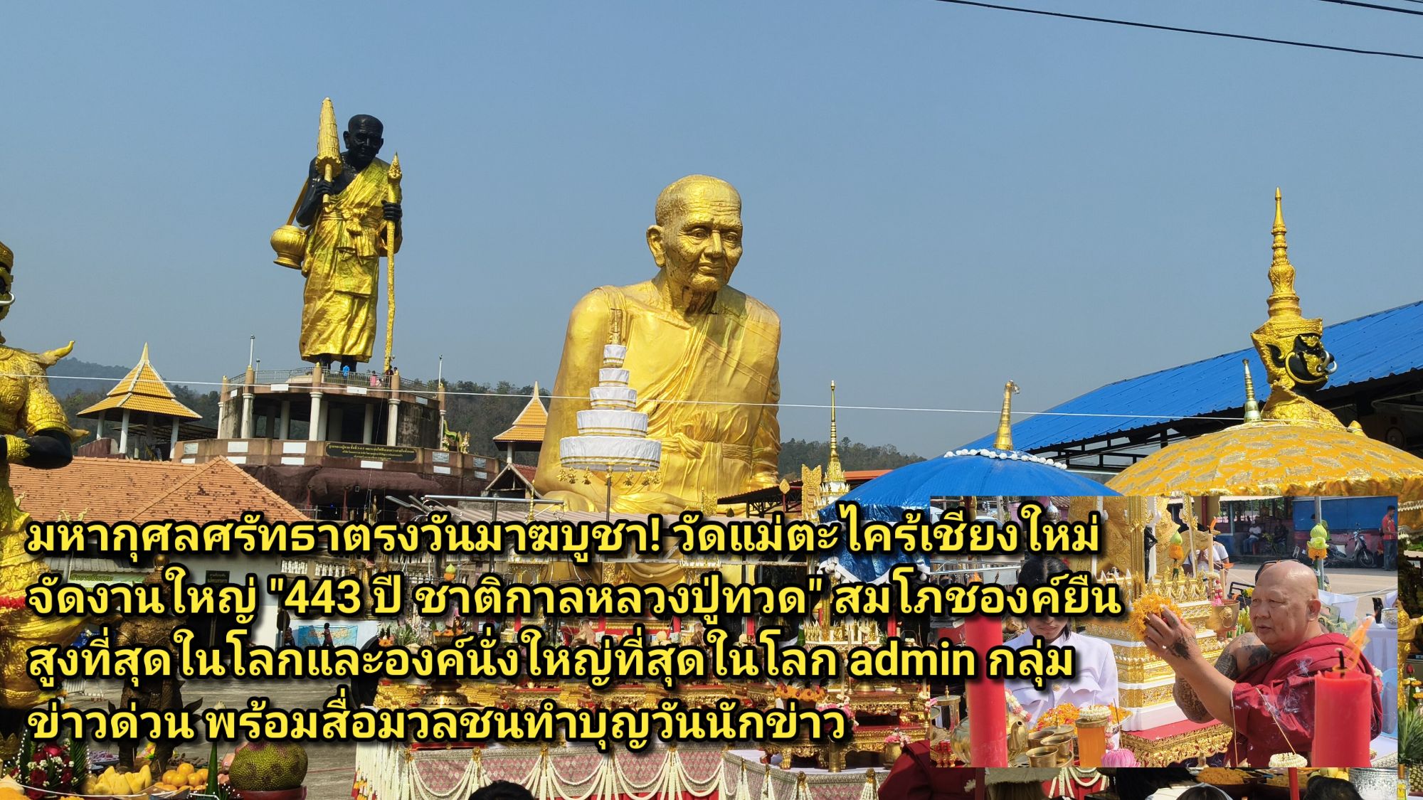 มหากุศลศรัทธาตรงวันมาฆบูชา! วัดแม่ตะไคร้เชียงใหม่จัดงานใหญ่ ๘๒๒๐;๔๔๓ ปี ชาติกาลหลวงปู่ทวด๘๒๒๑; สมโภชองค์ยืนสูงที่สุดในโลกและองค์นั่งใหญ่ที่สุดในโลก admin กลุ่มข่าวด่วน พร้อมสื่อมวลชนทำบุญวันนักข่าว