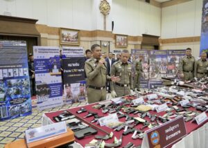 ผู้กระทำความผิดเกี่ยวกับอาวุธปืน เครื่องกระสุนปืน วัตถุระเบิดและบุคคลตามหมายจับ ในส่วนของกองบัญชาการตำรวจนครบาล โดยมี พ.ต.อ.อาคม ชุมพรัตน์ รอง ผบก.อก.บช.น. และเจ้าหน้าที่ที่เกี่ยวข้อง เข้าร่วมแถลงข่าว ณ ห้องศรียานนท์ อาคาร ๑ ชั้น ๒ สำนักงานตำรวจแห่งชาติ