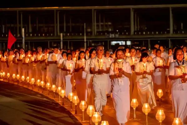 วันที่ 3 มีนาคม พ.ศ. 2569 ณ วัดพระธรรมกาย ตำบลคลองสาม อำเภอคลองหลวง จังหวัดปทุมธานี พุทธศาสนิกชนทั้งชาวไทยและชาวต่างประเทศจำนวนหลายหมื่นคน เข้าร่วมพิธีเวียนประทักษิณรอบพระมหาธรรมกายเจดีย์ พระพุทธเจ้าล้านพระองค์ และพิธีจุดมาฆประทีปกว่า 200,000 ดวง เพื่อรำลึกถึงเหตุการณ์สำคัญในวันมาฆบูชา