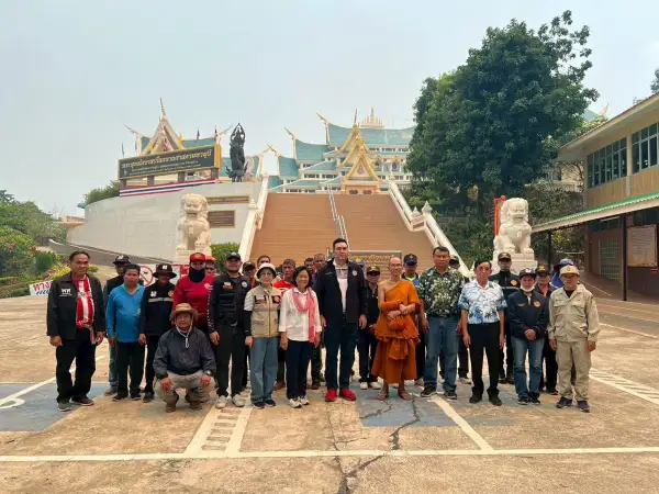 อุดรธานี – รมช.เกษตรฯ “วัชรพล ขาวขำ” ลงพื้นที่วัดป่าภูก้อน ติดตามวิกฤตไฟป่านายูง หลังพบจุดความร้อนพุ่งต่อเนื่อง ลามข้ามจังหวัดไปหนองคาย สั่งทำแนวกันไฟตีนเขา พร้อมประสานกรมฝนหลวงฯ ส่ง ฮ. สนับสนุนหากสถานการณ์วิกฤต ย้ำนักท่องเที่ยวยังเข้าวัดได้ตามปกติ
