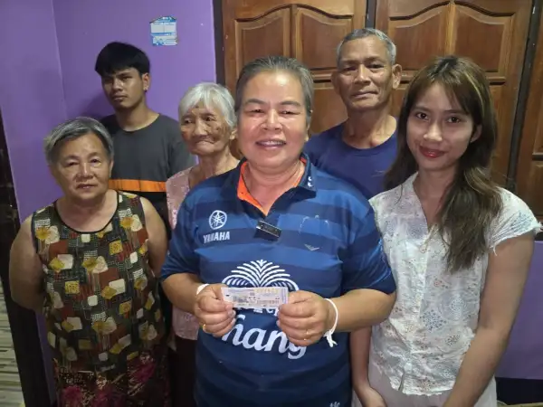 ผู้สื่อข่าวลงพื้นที่ไปยังบ้านของผู้โชคดี พบว่าบรรยากาศเต็มไปด้วยความคึกคัก ญาติพี่น้องและชาวบ้านต่างพากันเดินทางมาแสดงความยินดีอย่างอบอุ่นทราบชื่อผู้โชคดีคือ นางสาวกนกวรรณ ศรีกิจรัตน์ อายุ ๕๘ ปี ผู้ใหญ่บ้านบ้านหนองครอบ หมู่ที่ ๕ ตำบลสองชั้น อำเภอกระสัง จังหวัดบุรีรัมย์